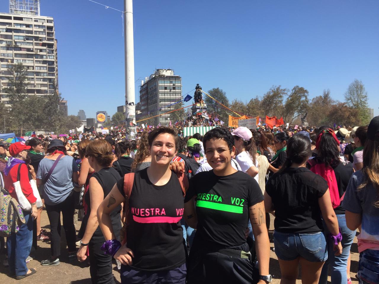Frases como “nunca más sin nosotras” se escuchaban por todo el centro de Santiago. Además, se realizó una gran cantidad de performances urbanas.