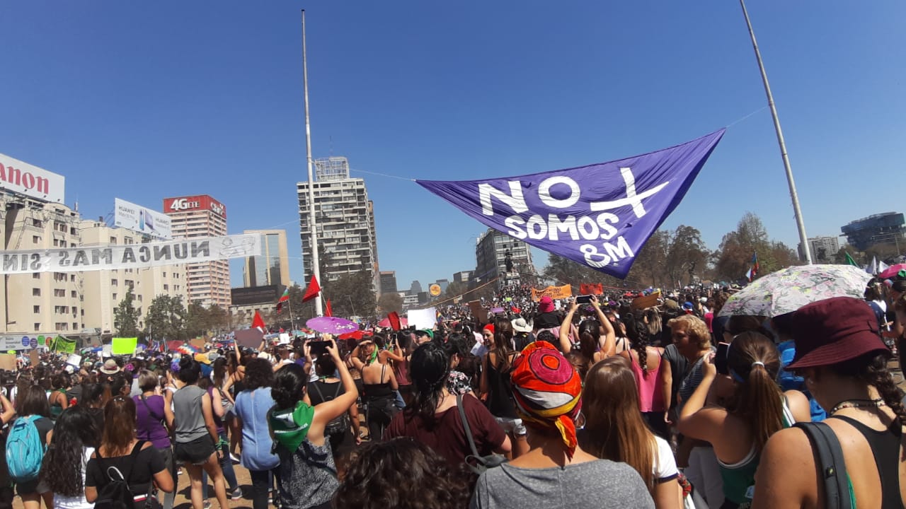Santiago, marzo 2020.- Estuvimos presentes en la marcha que se realizó en Santiago con motivo de la celebración del Día Internacional de la Mujer y al que asistieron más de 800 mil mujeres quienes se manifestaron con temas alusivos a la violencia de género, desigualdad social, femicidios, aborto libre, entre otras consignas.